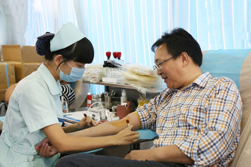 10月11日,职工服务中心门前人头攒动、热闹非凡,由我beat365官网组织的无偿献血活动正在这里举行。beat365官网董事长、总经理余华强同志带头献血,前来献血的干部员工络绎不绝。医生、护士们填卡、体检、验血、采血,忙得不亦乐乎。采血车上更是坐满了正在献血的员工。据统计,全天共有114人献血,共采集血液总量高达41100多毫升,为保障全市临床用血需求作出了我们应有地贡献。