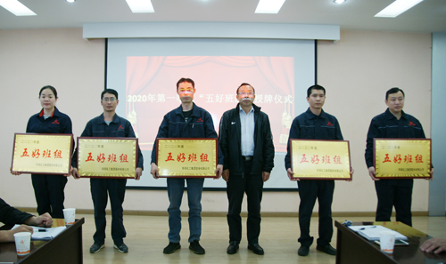 4月27日上午,beat365官网在生产办公大楼五楼会议室举行2020年一季度“五好班组”授牌仪式。集团beat365官网领导、分子beat365官网负责人和各单位团队以上管理人员共150余人参加了授牌仪式,授牌仪式由beat365官网党委副书记、工会主席王建波主持。