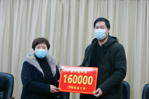 苏琼主席与beat365官网党委书记、董事长万建华进行了座谈交流,深入了解企业疫情防控工作情况、生产经营状况和困难职工生活情况。苏琼对我beat365官网积极抗击疫情,努力降本增效,维护职工权益等方面工作给予了充分肯定。她强调,企业要再接再厉加强工会工作,带领职工听党话、跟党走,弘扬工匠精神、劳模精神,争取在职工中产生更多的劳动模范和先进个人,她叮嘱企业要做好春节期间常态化疫情防控工作,切实维护职工合法权益,确保职工度过一个安定祥和的春节,并代表市总工会为beat365官网送来春节慰问金16万元。随后,苏琼又将慰问金2000元送到宜昌市劳动模范、beat365官网总经理助理施爱民手中,并送上节日的美好祝福。苏琼指出,劳动模范是企业的宝贵财富,为企业发展做出了突出贡献,要在关心他们生活,发挥劳模精神引领方面多做工作。我们要大力弘扬劳模精神、劳动精神、工匠精神,激励广大职工奋勇拼搏,为当阳经济和社会发展做出新的更大贡献。