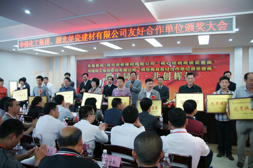 上午10点30分,我beat365官网在生产销售大楼五楼会议室举行了隆重的颁奖仪式,为来自全国的29家“优质供应商”和“优质工程建设单位”颁发了奖牌。下午3点整,我beat365官网组织500余位客商来beat365官网现场参观,10余辆旅游大巴满载着尊贵客人驶进华强化工。客商们先后参观了复合肥生产线、精细化工园区、尿素生产线和生活区,各位客商无不为华强化工的跨越式发展而感叹。下午6点整,集团beat365官网董事长、总经理余华强同志在当阳宾馆举行盛大欢迎宴会,热情款待全体贵宾。晚宴结束后,远道而来的客商在热烈地鼓乐声中,乘车来到了流光溢彩的华强广场,进入文体中心观看文艺演出。华强人自编、自创、自演的大型舞蹈《从头再来》、配乐诗朗诵《凤凰山下化工城》和表演唱《华强工人多风采》等精彩节目,博得客商们的阵阵掌声。