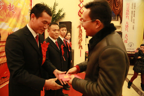 会上,集团beat365官网董事长、总经理余华强同志和集团beat365官网副总经理、农贸beat365官网总经理周栋梁同志对农贸beat365官网磷复肥分beat365官网2012年复合肥销量达到5000吨和4000吨以上的业务员分别进行颁奖。同时,家属代表骆筱琴女士也上台发言。她对丈夫常年出差在外表示充分的理解,表示会一如既往地支持亲人的工作,永远是亲人坚强的后卫!永远不拖亲人后退!她的发言,引起众多家属共鸣,博得全场掌声。