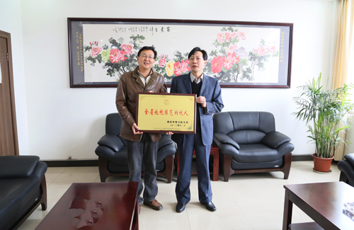 3月26日上午,当阳市地税局局长黄雄等一行为我beat365官网送来“全省模范地税纳税人”的奖牌。长期以来,我beat365官网依法纳税、诚信纳税, 2012年度所缴纳的地税在全省企业中名列前茅。